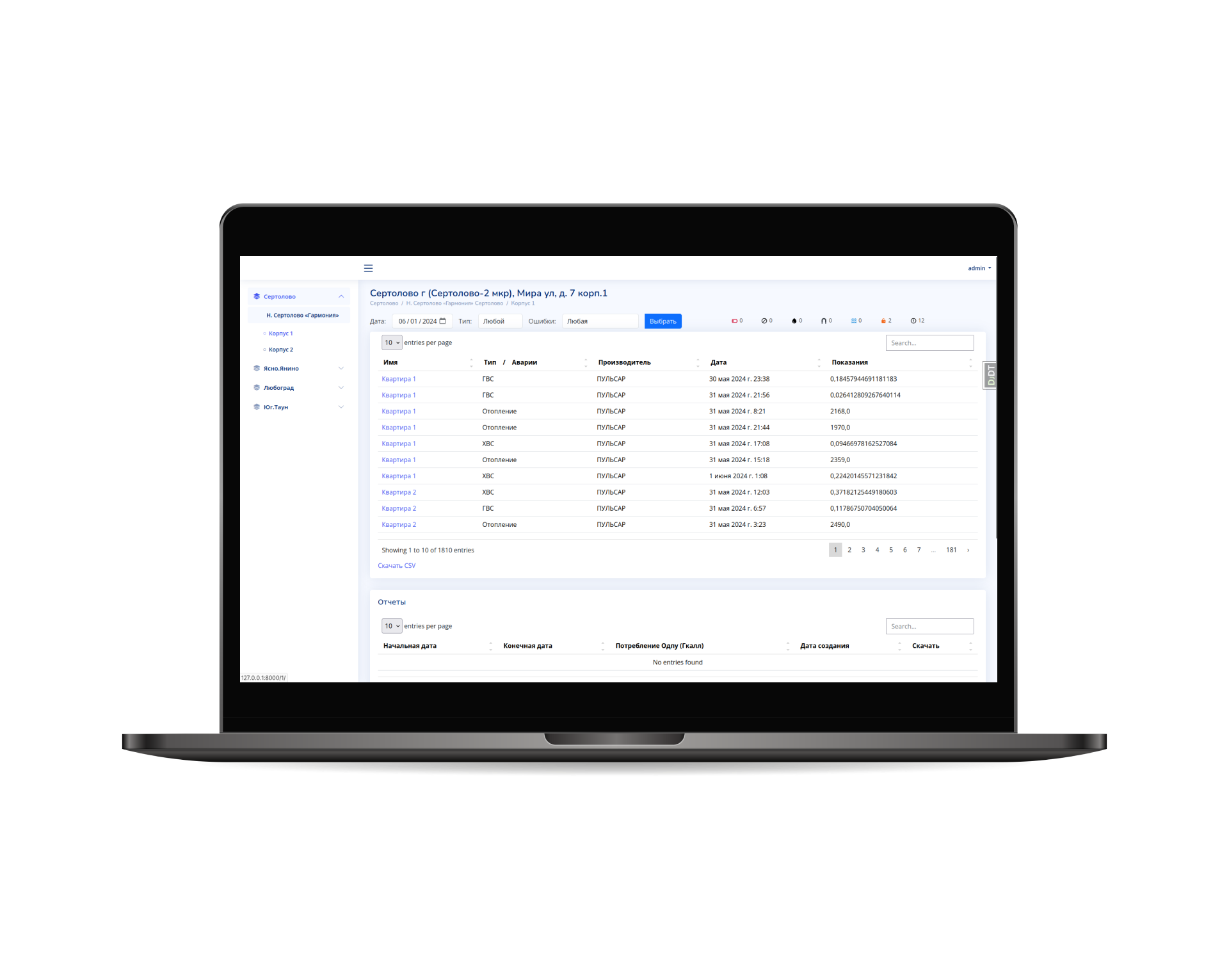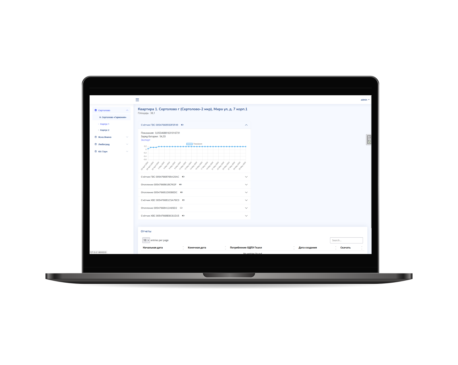 Система предоставляет реальные данные о потреблении воды и тепла.